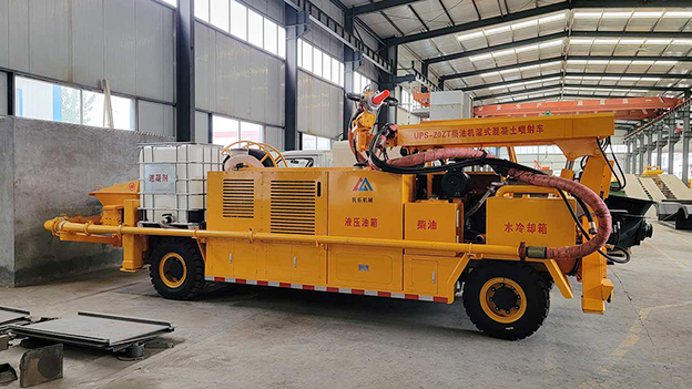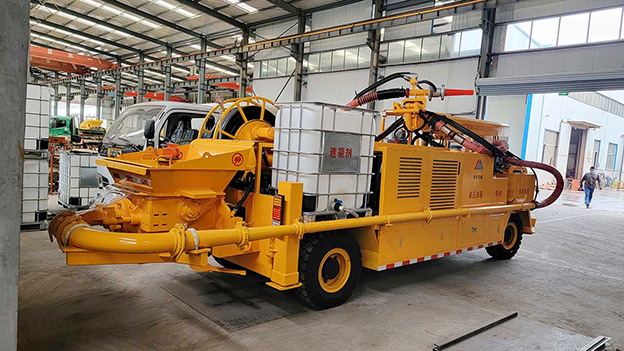 2.車載式濕噴臺車泵送系統(tǒng)能耗少,工作效率高,故障率低,易損件少,維護(hù)使用成本低,系統(tǒng)可靠性高,輸送量穩(wěn)定。噴射系統(tǒng)采用雙噴頭噴漿作業(yè),提高了工作效率。