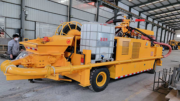 3.車載式濕噴臺車配有自動潤滑系統(tǒng),對主要密封部位采用自動潤滑,油脂加注量、加注時間自動控制,大大延長易損件壽命。速凝劑添加連續(xù)可調(diào),可根據(jù)噴漿量調(diào)節(jié)。