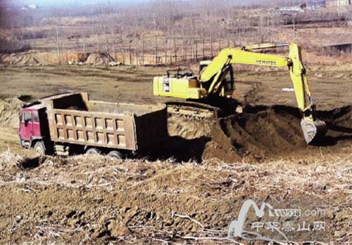 徂徠山脈,高家莊,百余畝丘陵農(nóng)田在挖掘機等工具的摧殘下,變的滿是石料,坑洼難行,“光這邊就有100多畝地,都在采石、選鐵礦等過程中被破壞了,土都被車運走賣掉了?!备呒仪f一村民告訴記者說。記者現(xiàn)場探訪發(fā)現(xiàn),目前仍有挖掘機在現(xiàn)場作業(yè),將農(nóng)田里的土挖掉運走。